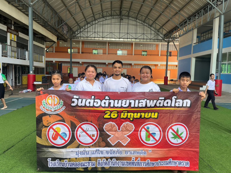 26 มิถุนายน วันต่อต้านยาเสพติดโลก ตัวแทนครูโรงเรียนบ้านคลองมะขาม อ่านสารรัฐมนตรีว่าการกระทรวงศึกษาธิการ เนื่องในวันต่อต้านยาเสพติดโลก พร้อมทั้งนำนักเรียนเดินรณรงค์ต่อต้านยาเสพติด ณ บริเวณชุมชนบ้านคลองมะขาม |