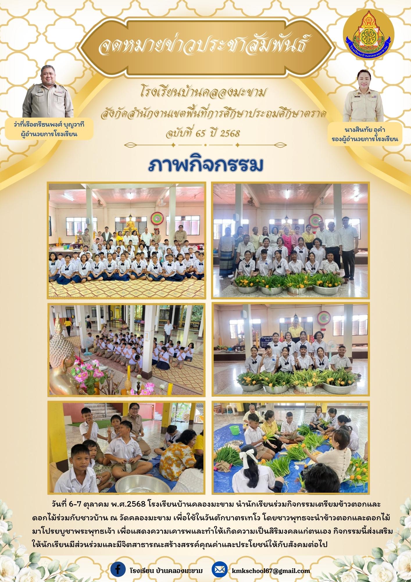 ฉบับที่ 65/2568 ร่วมกิจกรรมเตรียมข้าวตอกและดอกไม้ร่วมกับชาวบ้าน ณ วัดคลองมะขาม