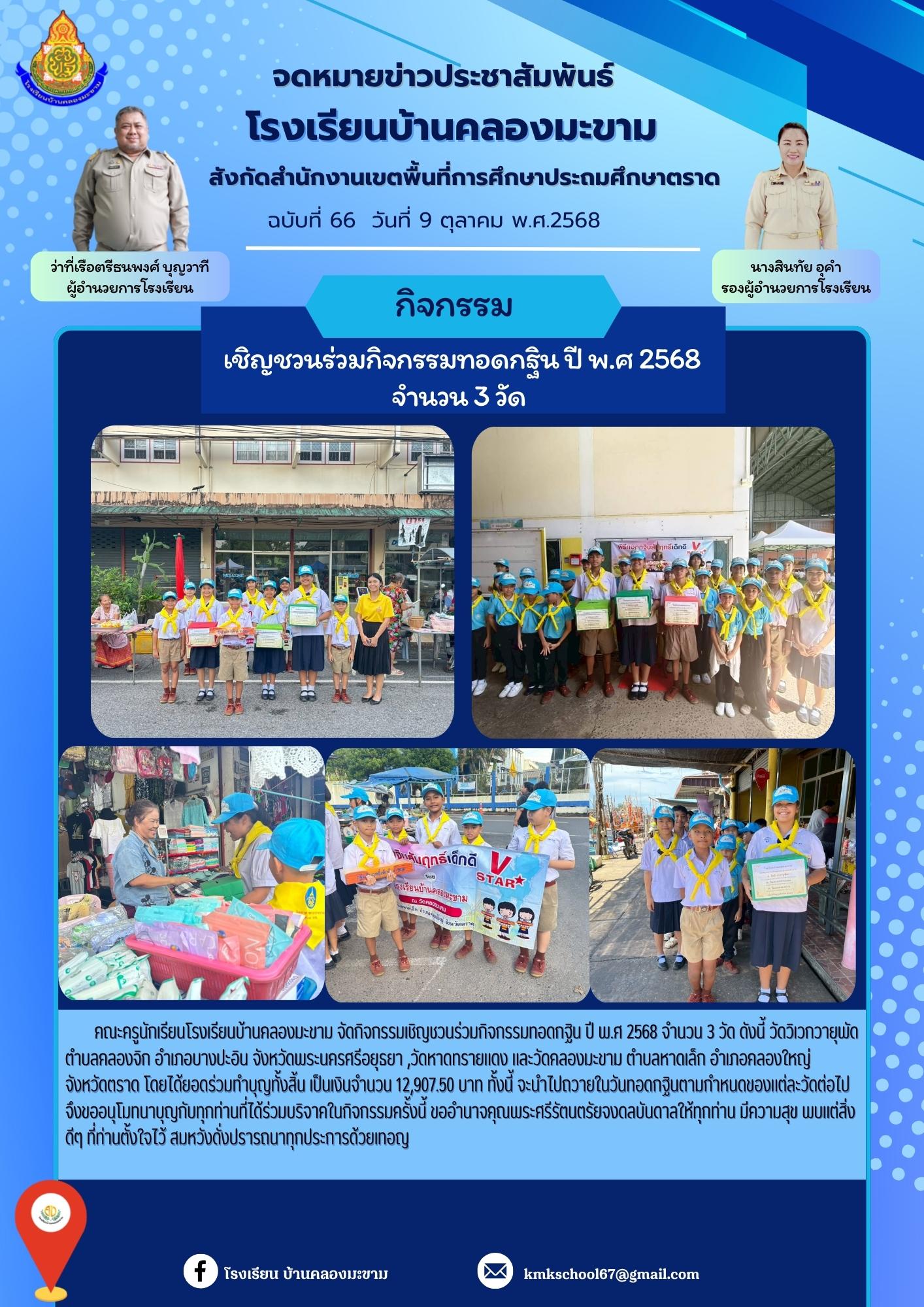 ฉบับที่ 66/2568 เชิญชวนร่วมกิจกรรมทอดกฐิน ปี พ.ศ 2568 จำนวน 3 วัด