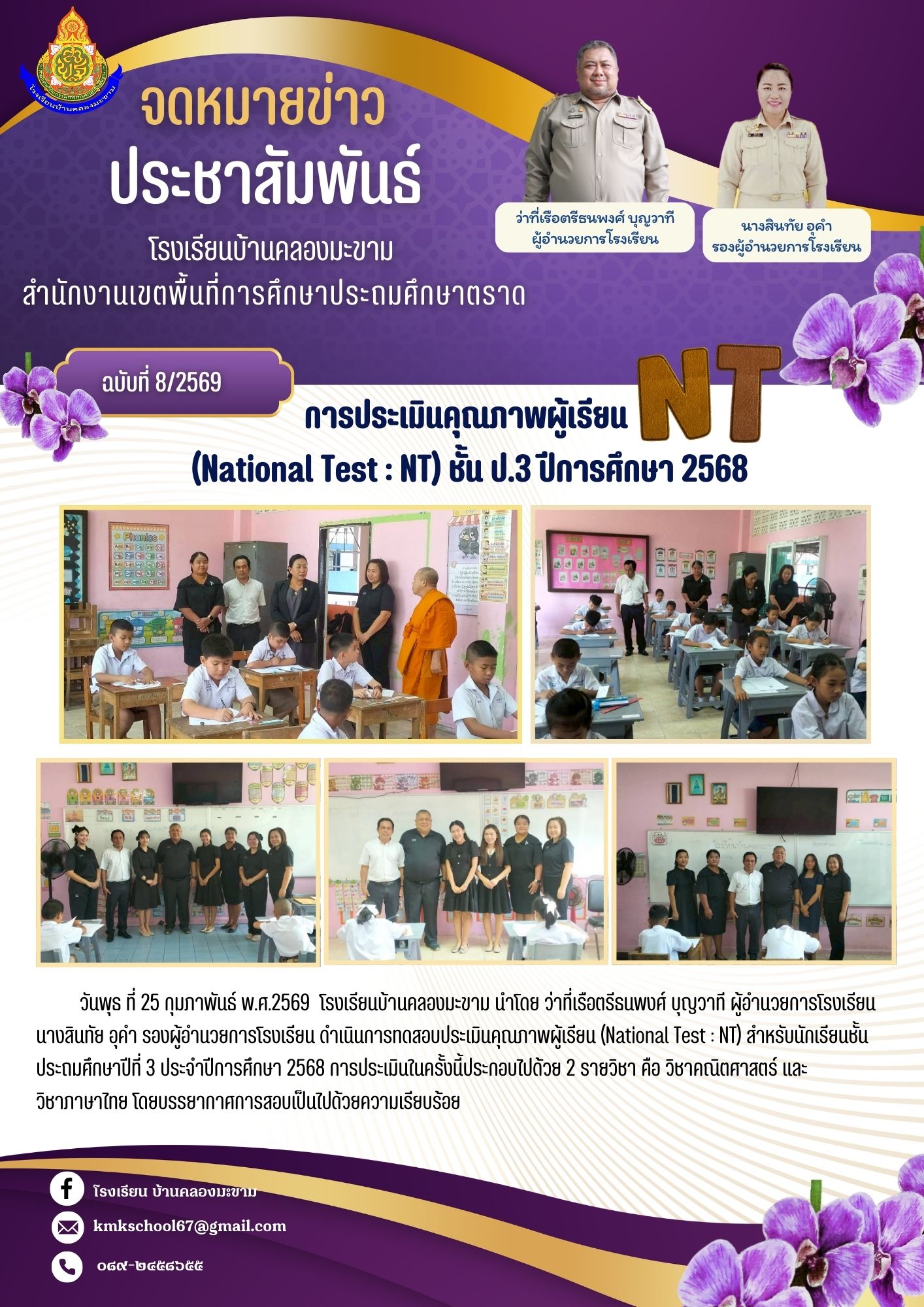 ฉบับที่ 8/2569 การประเมินคุณภาพผู้เรียน (National Test : NT) ชั้น ป.3 ปีการศึกษา 2568