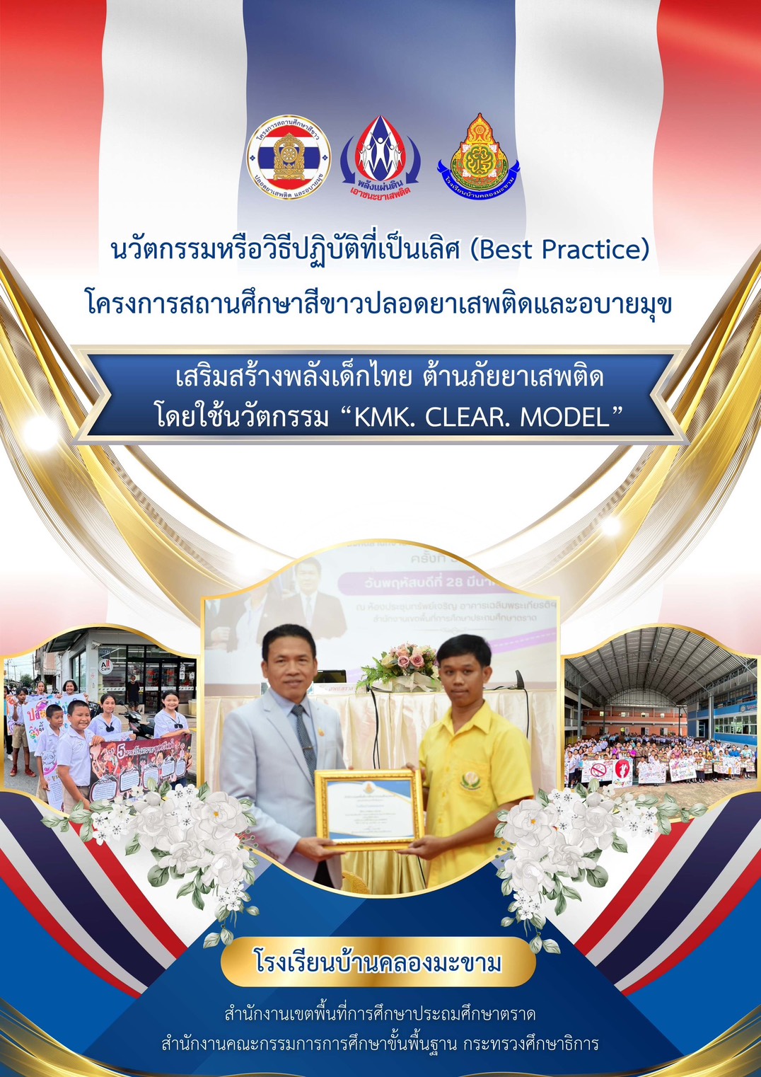 นวัตกรรมหรือวิธีปฏิบัติที่เป็นเลิศ (Best Practice) โครงการสถานศึกษาสีขาวปลอดยาเสพติดและอบายมุข เสริมสร้างพลังเด็กไทย ต้านภัยยาเสพติด โดยใช้นวัตกรรม“KMK. CLEAR. MODEL” โรงเรียนบ้านคลองมะขาม