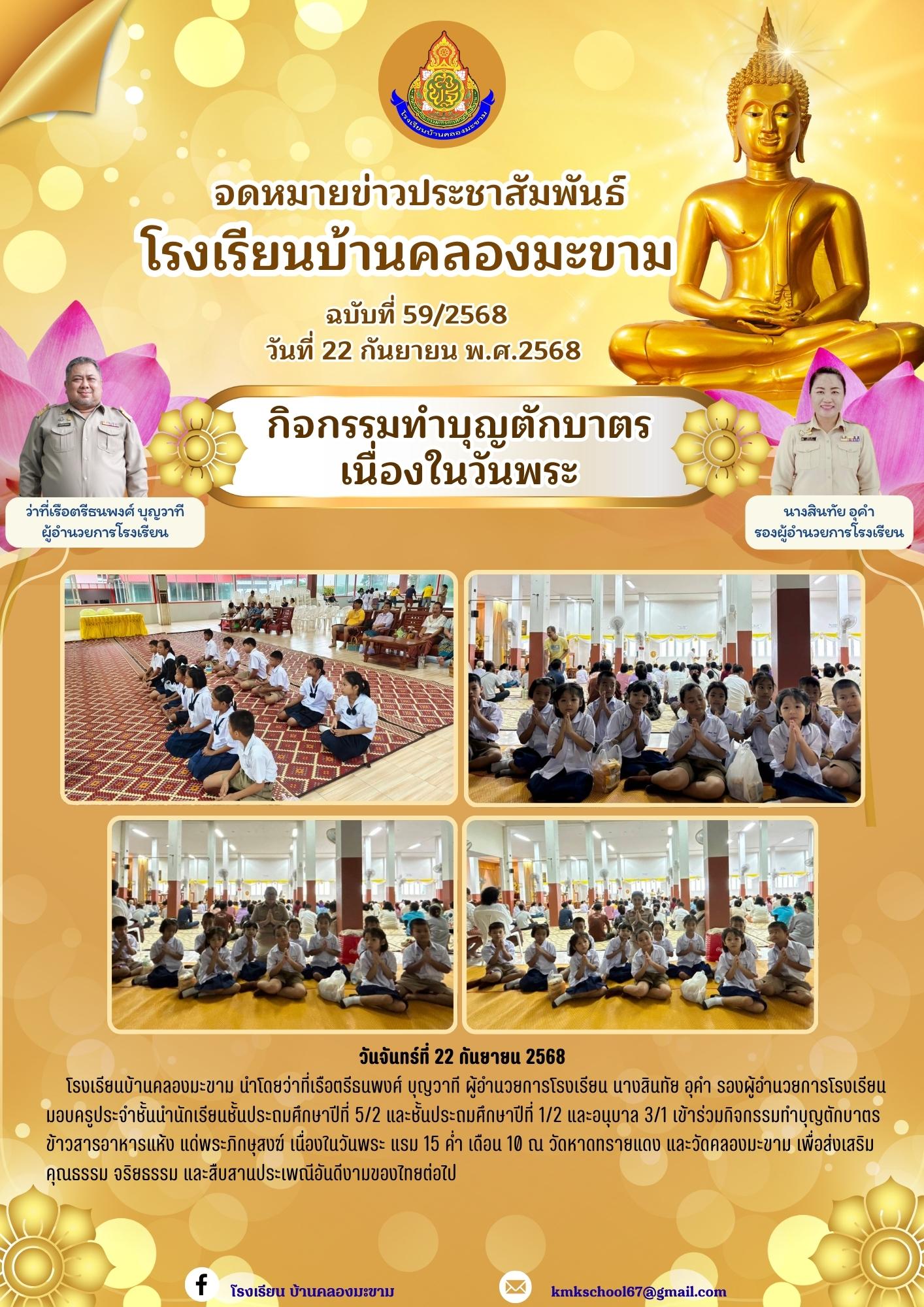 ฉบับที่ 59/2568 กิจกรรมทำบุญตักบาตร เนื่องในวันพระ