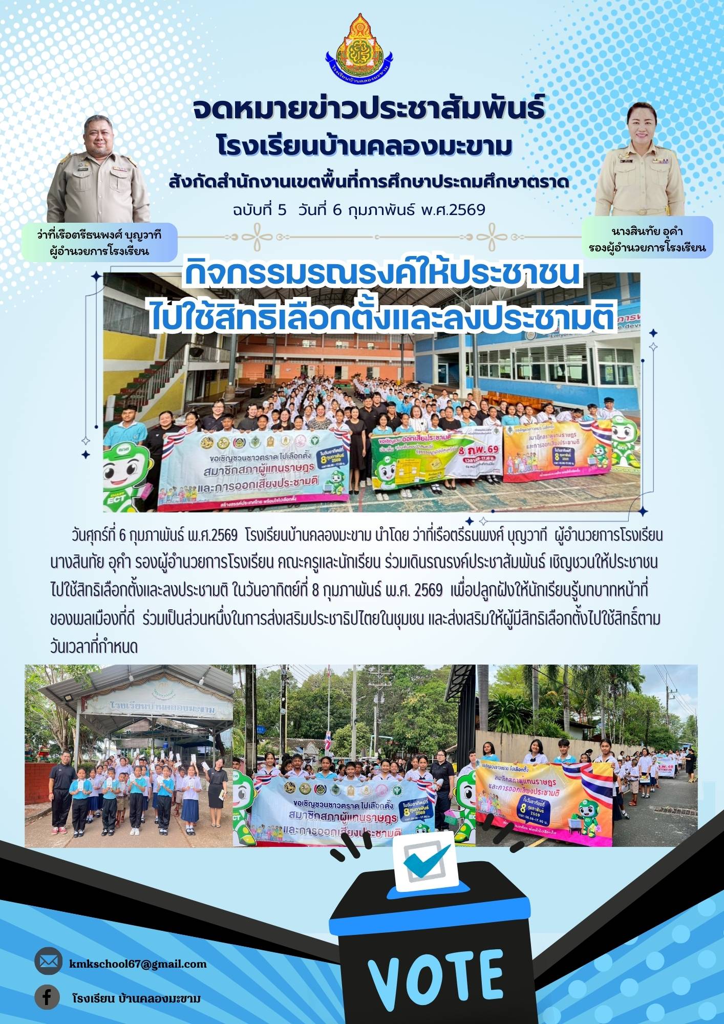 ฉบับที่ 5/2569 กิจกรรมรณรงค์ให้ประชาชน ไปใช้สิทธิเลือกตั้งและลงประชามติ เลือกตั้งปี 2569